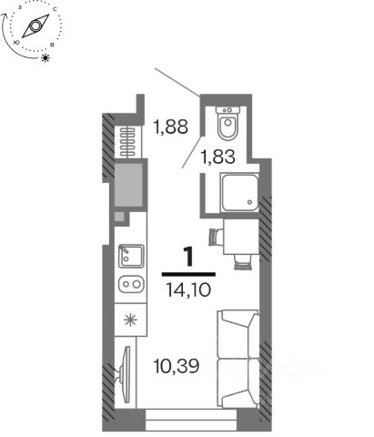 • ✅ Минимальная площадь: 14,1 м²