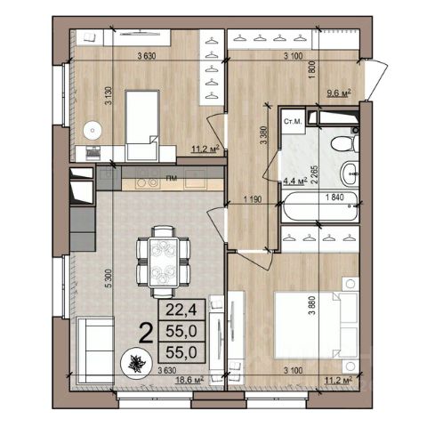 - смонтирована система "ТЕПЛЫЙ ПОЛ" в санузле и ванной комнате, в коридоре у входной двери;