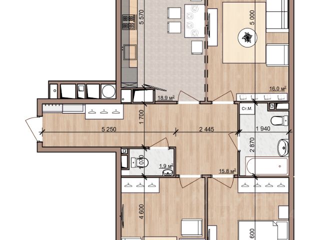2 комн. квартира в ЖК Еврокласс-4, площадь 69.6 м², жилая 28.5 м², кухня 16.8 м²