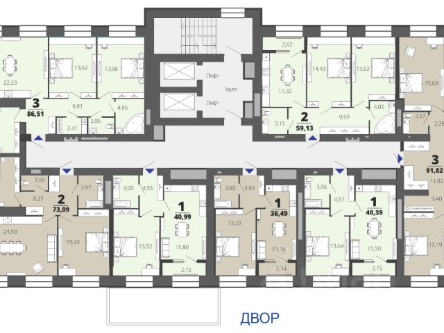 Общая площадь: 56 м²