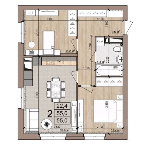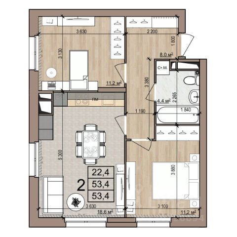 Квартира 44, 1-комнатная в ЖК Полярная звезда от компании "Зеленый сад". Московский район, развитая инфраструктура. Купить квартиру в новостройке в Рязани: 41.2 кв.м., 7 этаж. Кухня — 19.9 кв.м. Ипотека, Trade-In. Подробности на нашем сайте
