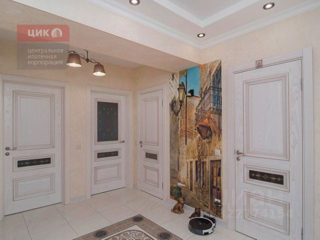 На первом уровне квартиры расположен коридор с большим встроенным шкафом, разноуровневой подсветкой,зеркалом и картинами).В коридоре и кухне расположены теплые полы , работающие от котла.