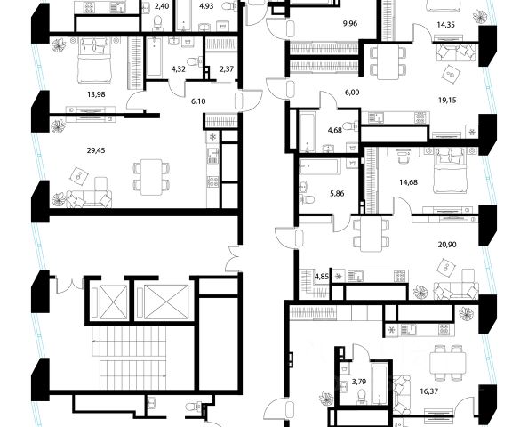 Городской квартал "Манхэттен" — это ультрасовременный квартал бизнес-класса в центре Рязани. Проект сочетает в себе кардинально новые для города архитектурные решения и интегрированный дизайн среды. Авторские планировки максимально продуманы, а инфраструктура задает новый тренд городу. "Манхэттен" — это три дома переменной этажности на пересечении улиц Татарская и Пролетарская. Их объединяет приватный двор и архитектурная концепция. Фасад выполнен в стиле нью-йоркских высоток и пропитан духом американской мечты. Прямые геометрические формы составляют основу архитектурной концепции. В облицовке применяется качественный керамический кирпич с элементами архитектурной 3D-кладки и композитные материалы. 3 корпус выделяется своей элегантностью, притягивая взгляды прохожих. Прямые геометрические формы создают сдержанный стиль, в то время как благородный, светлый фасад, выполненный из керамического кирпича, добавляет изысканности. Уникальность дома проявляется в его нестандартных панорамных окнах, которые размещены под углом, будто бы утопая в фасаде здания. Это создает впечатление непрерывности и гармонии с окружающей средой. Терраса на 15 этаже — это не просто место для отдыха и общения, это настоящий уголок вдохновения. Соседский центр Место, которое объединяет деловых, спортивных и творческих людей, живущих в одном квартале. В соседском центре вы сможете уединиться для работы в коворкинге, отвести детей в детскую игровую комнату и отвлечься от забот или переключиться от повседневных задач за игрой в пул — американский бильярд — или размяться на беговой дорожке в фитнес-зале. Игровой вы можете воспользоваться для празднования детских дней рождений. Коворкинг Фитнес-зал Переговорные комнаты Детская игровая Офис УК Американский пул. Постирочная комната
