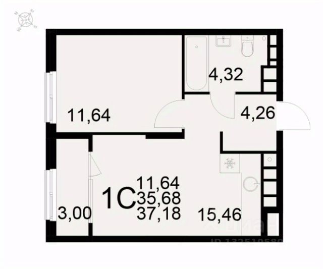 123 833 ₽/м²