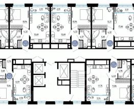 Входные группы с безбарьерной средой, пандусами, колясочными.