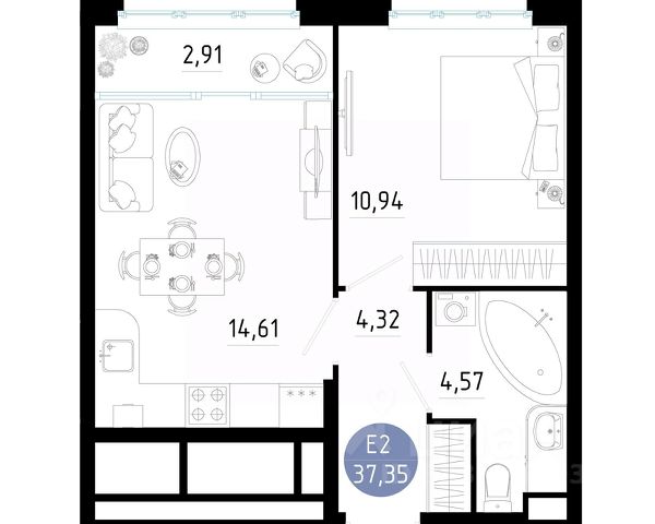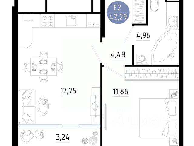 В зоне кухни-гостинной четыре увеличенных окна!Мастер-спальня с санузлом!