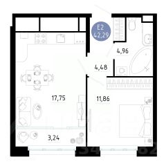 (кухня-гостинная 22,6 кв. м.,комнаты 9 кв. м +11,8 кв.м.,санузел 4.3 кв. м., коридор 9,5 кв.м).