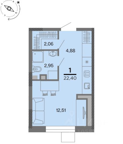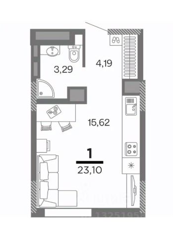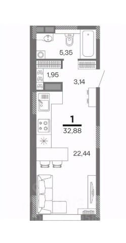 Есть ниша под гардеробную, зона кухни и зона спальни.
