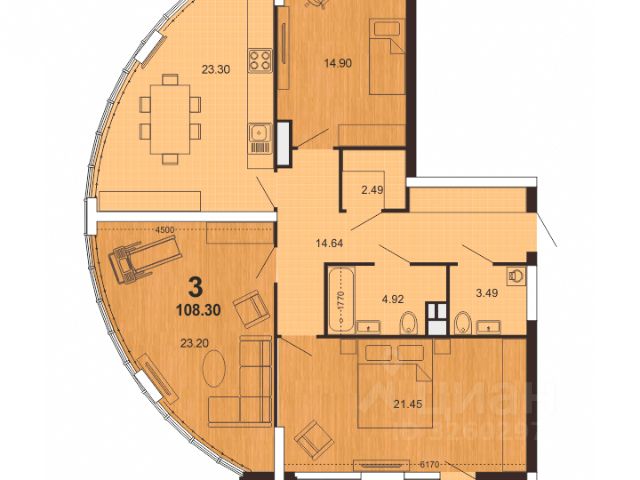 Плюсом лоджия площадью 4,5 кв. м (застеклена тройным стеклопакетом и обшита ПВХ + свет).