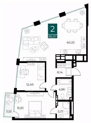 Продаётся 3-комнатная квартира в строящемся доме (Корпус 1), срок сдачи: IV-кв. 2028, общей площадью 85.96 кв.м., на 9 этаже. В мире, где все стремится вверх, мы переосмыслили понятие истинного комфорта.