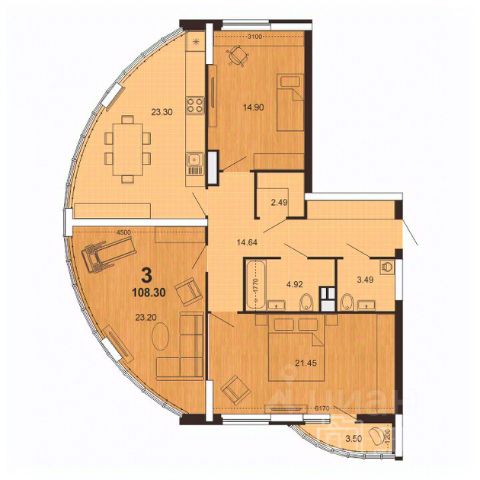 • ✅ Минимальная площадь: 54,1 м²