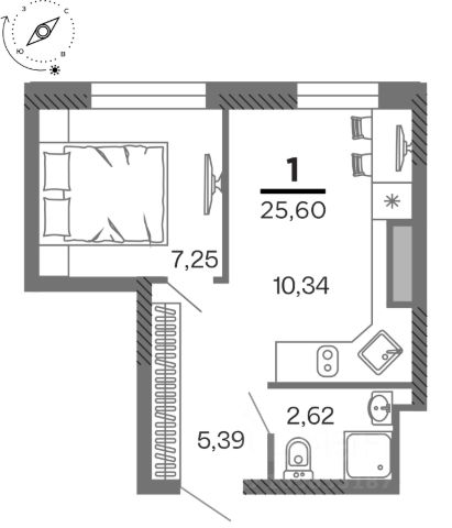 Продается теплая, светлая однокомнатная квартира в современном ЖК Северный в Олимпийском городке.