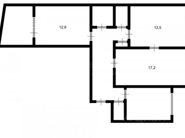 Общая площадь квартиры 60,5 кв. м, жилая площадь - 35,2 кв. м (3 комнаты прямоугольной формы 11,5; 11,8; 11,9 кв. м), кухня - 9,3 кв. м, коридор - 11,8 кв. м, санузел - 4,2 кв. м.