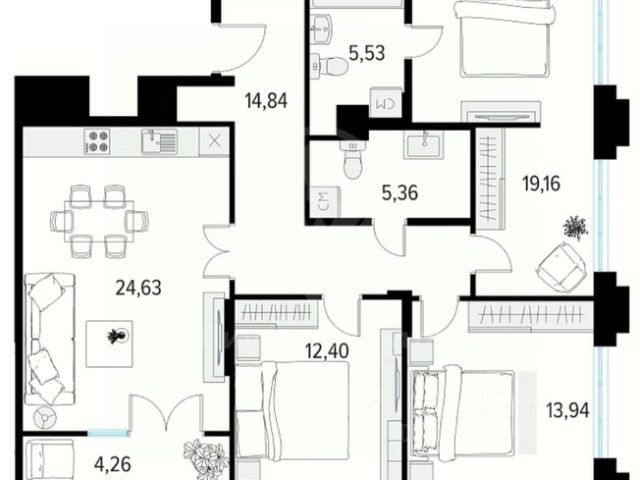 для хранения ваших вещей в квартире предусмотрен вместительный встроенный шкаф