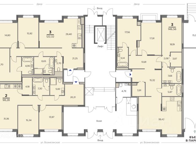 Клубный дом на Вознесенской роскошь в достойном окружении Клубный дом на Вознесенской это не просто элитный малоквартирный жилой дом. Это особняк в стиле русского классицизма, с уютным зеленым двориком, расположенный в престижном благоустроенном районе исторического центра Рязани. Эксклюзивный проект, который гармонично сочетает современные планировки, премиальные материалы и уникальные архитектурные и дизайнерские решения - все соответствует самому высокому статусу. Роскошная классика для ценителей тишины и комфорта, которые при этом хотят оставаться в центре событий. В самом сердце города Дом построен на пересечении улиц Вознесенской и Щедрина. Уютное место в историческом центре города. Здесь особая атмосфера - сердце деловой активности города шумно бьется всего в нескольких кварталах, но тут тишина и спокойствие. При этом всё самое важное в двух шагах. Музеи, филармония, театр драмы, бизнес-центры, магазины, аптеки, кафе и рестораны. Для любителей неспешных прогулок - сразу несколько зеленых зон: парк дворца детского творчества, Верхний и Нижний городские сады. Рядом с домом находятся две школы и детский сад. Архитектура Классический стиль русских усадеб и загородных особняков XIX века. Архитектура, в которую влюбляешься с первого взгляда. Элегантная классика и уникальные дизайнерские решения соединились в одном проекте. Ажурные кованые решетки балкончиков, французские окна, изящная лепнина в сочетании с современными отделочными материалами премиум-класса. Проектом предусмотрена комбинация навесных элементов фасада и сразу нескольких фактур: декоративной штукатурки и натурального камня. Это экологично и долговечно. Холл и коридоры выполнены по индивидуальному дизайн-проекту в светлых оттенках, с использованием натуральных и качественных материалов. Лифты люксовых производителей, отличающиеся своими надежностью и комфортом. Двор мечты Уникальности проекту добавляет уютный, зелёный и защищенный от посторонних глаз двор. То место, где можно отдохнуть и побыть наедине со своими мыслями. Классический парк в миниатюре - цветы, живая изгородь, зеркальный водоем с каналом. Выбор растений неслучаен. Яблоня, липа, ароматная сирень традиционные обитатели русских усадеб. Ландшафтными дизайнерами предусмотрена зона отдыха с деревянными качелями, где так удобно читать книжку под пение птиц и шум воды. Для детей оборудована многофункциональная, современная игровая площадка с использованием натуральных и экологически чистых материалов. Квартиры и планировки В доме на Вознесенской всего 15 квартир. Просторные, светлые, трёхкомнатные, площадью более 100 кв.м. Высота потолков 3,2 м. Если вы мечтали по утрам пить кофе у французского окна с видом на уютный зеленый сад, то в этом проекте желания воплотились в жизнь. Рациональные планировки значительно повышают уровень комфортной жизни. В каждой квартире предусмотрены: несколько санузлов, спальни, просторная кухня-гостиная. Есть и вместительная гардеробная. На кухне установлен газовый котел от ведущего мирового Купить квартиру на улице Вознесенская в городе Рязань.