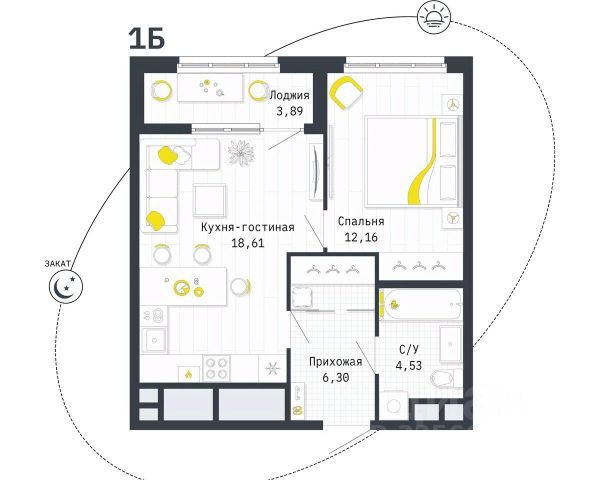 По факту ещё лоджии +7,9 кв.м, итого 57,5 кв.м.