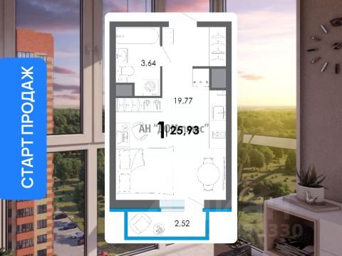 Продаётся студия в строящемся доме (Корпус 1), срок сдачи: IV-кв. 2028, общей площадью 26.34 кв.м., на 9 этаже. В мире, где все стремится вверх, мы переосмыслили понятие истинного комфорта.