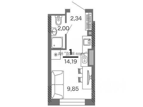 - Общая площадь 22.50кв.м, жилая 12кв. м., кухня 5.6. кв.м.