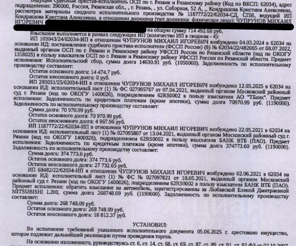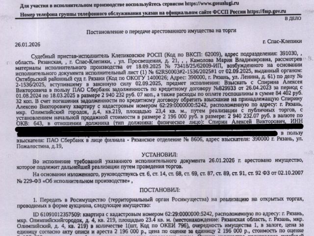 Данные получены с сайта ГИС Торги. Помещение, назначение: жилое, наименование: квартира, площадь 21,6 кв.м., кадастровый номер 62:29:0020004:3298, местоположение: Рязанская область, г. Рязань, ул. Интернациональная, д. 7а, кв. 147. Согласно справке ООО "Р-Энергия" от 25.12.2025 г. по данному адресу зарегистрировано 5 человек, задолженность по взносам на капитальный ремонт составляет 11 751,72 руб. Залогодержатель: ПАО "Сбербанк России". Начальная цена: 912 640 (Девятьсот двенадцать тысяч шестьсот сорок) руб. 00 коп., без НДС. Задаток: 40 000 (Сорок тысяч) руб. 00 коп. Шаг аукциона 1%: 9 126 (Девять тысяч сто двадцать шесть) руб. 40 коп.