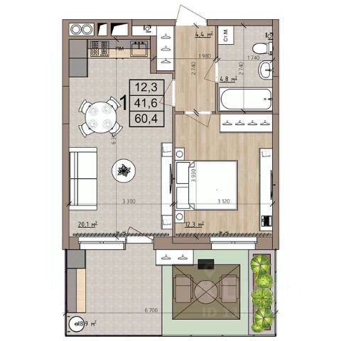 В квартире есть шикарная большая лоджия (5,78 м. кв.). Можно оборудовать под летнюю комнату или кабинет.