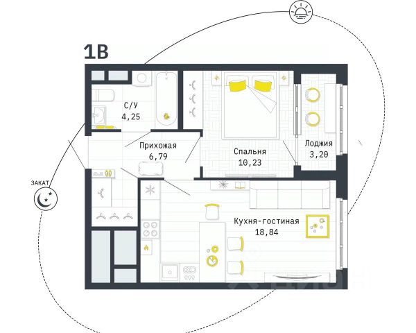 - Просторная кухня 18,5 кв.м с выходом на лоджию