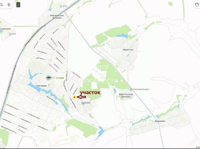 Код объекта: 1679686. Рязанский район, д. Сергеевка Вблизи: город Рязань 10 км, Дубняки, Секиотово, Абрютино ОТЛИЧНЫЙ УЧАСТОК в д. Сергеевка! Кадастровый номер 62:15:0020212:28 Площадь 40 сот. Размеры 40х100 м Электричество и газ проходят по границе участка Комфортный круглогодичный подъезд по асфальтированной дороги к участку. За границей участка - Сергеевский пруд и песчаный пляж. В деревне есть продуктовые магазины, автобусное сообщение до Рязани. В 5 минутах езды находится спортивный комплекс Атрон, спортивно-развлекательный центр Семено-Оленинский. Звоните! Постараемся показать в удобное для Вас время.