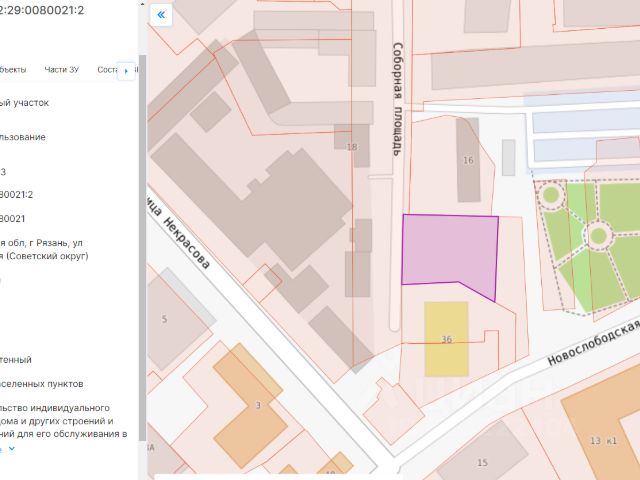 Земельный участок с кадастровым номером 62:29:0080021:2, площадью 969 кв. м, Земли населенных пунктов, вид разрешенного использования - Строительство индивидуального жилого дома и других строений и сооружений для его обслуживания в соответствии с согласованным в установленном порядке проектом, по адресу: Рязанская обл, г Рязань, ул Соборная (Советский округ)