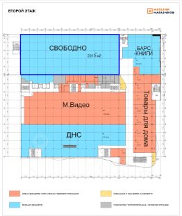 - Общая площадь 2 320 м2, открытая планировка правильной формы. Помимо торгового зала есть вспомогательные складские/офисные помещения общей площадью 116 м2 (входят в площадь 2 320 м2)