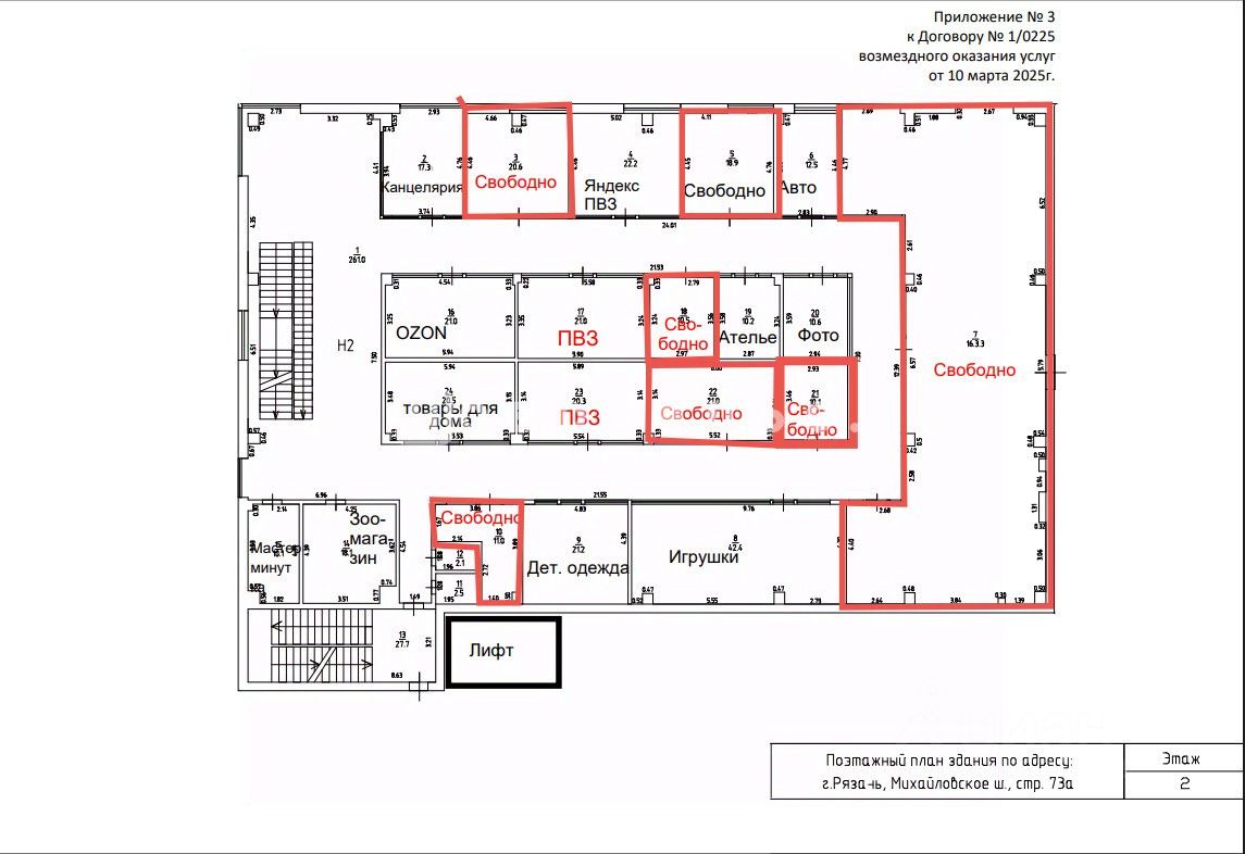 2 этаж - 21 кв.м по 1200 р/м2 и 163 кв.м по 800 руб