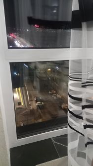 Панорамные окна с видом на площадь Дворца Бракосочетаний, Светомузыкальный фонтан, Народный бульвар, на балконе удобная зона отдыха с двумя креслами "ротанг", где можно любоваться роскошным видом из окна и пить кофе, пол теплый, можно регулировать, приятно находиться: зимой тепло, летом-прохладно.