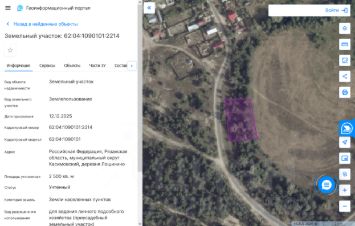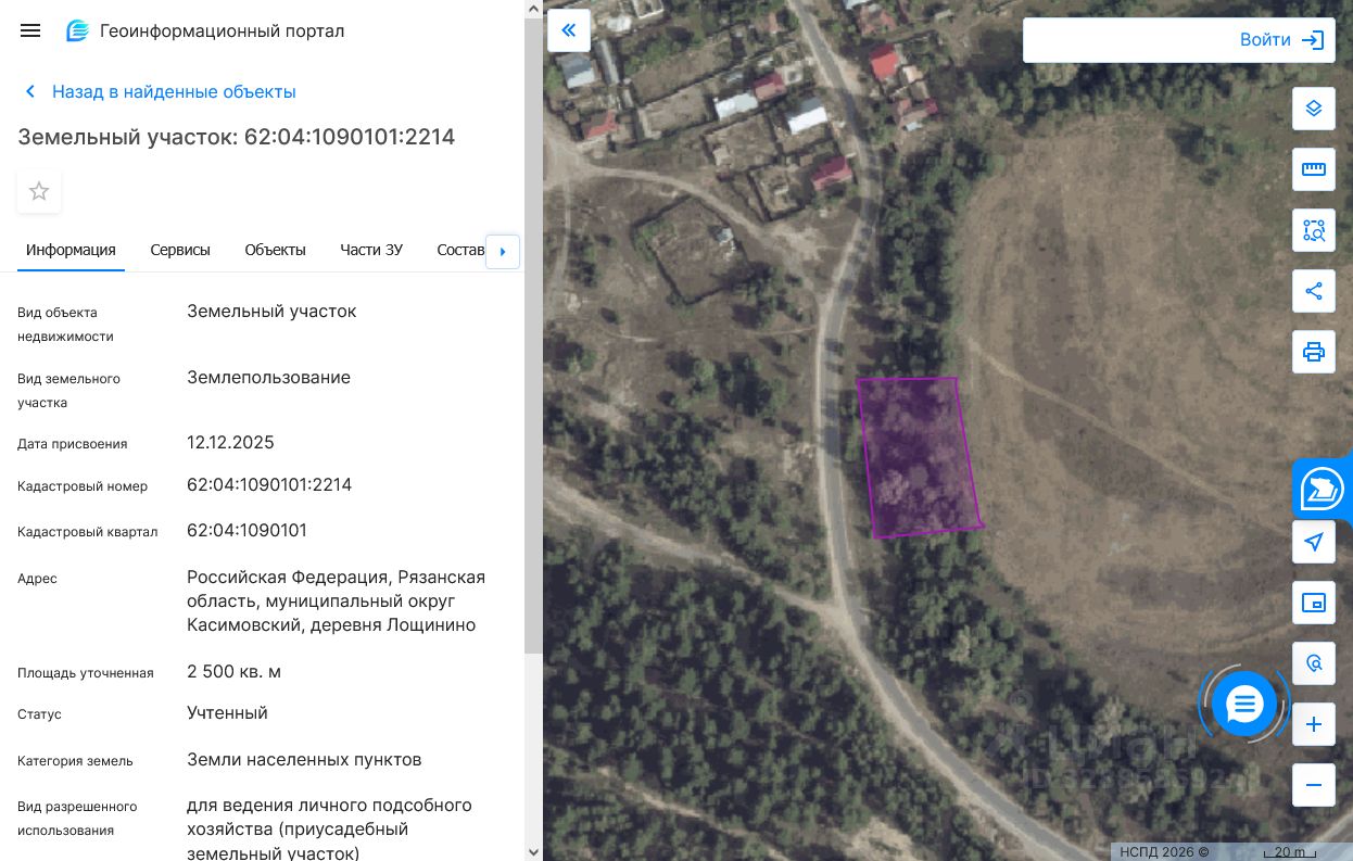 Земельный участок с кадастровым номером 62:04:1090101:2214 площадь 2500 по адресу Российская Федерация, Рязанская область, муниципальный округ Касимовский, деревня Лощинино