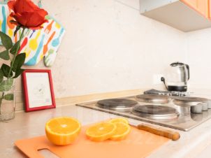 - Полный комплект техники: Smart-TV, Wi-Fi, кондиционер, стиральная машина, микроволновка, электрическая плита, чайник, турка, фен, утюг.