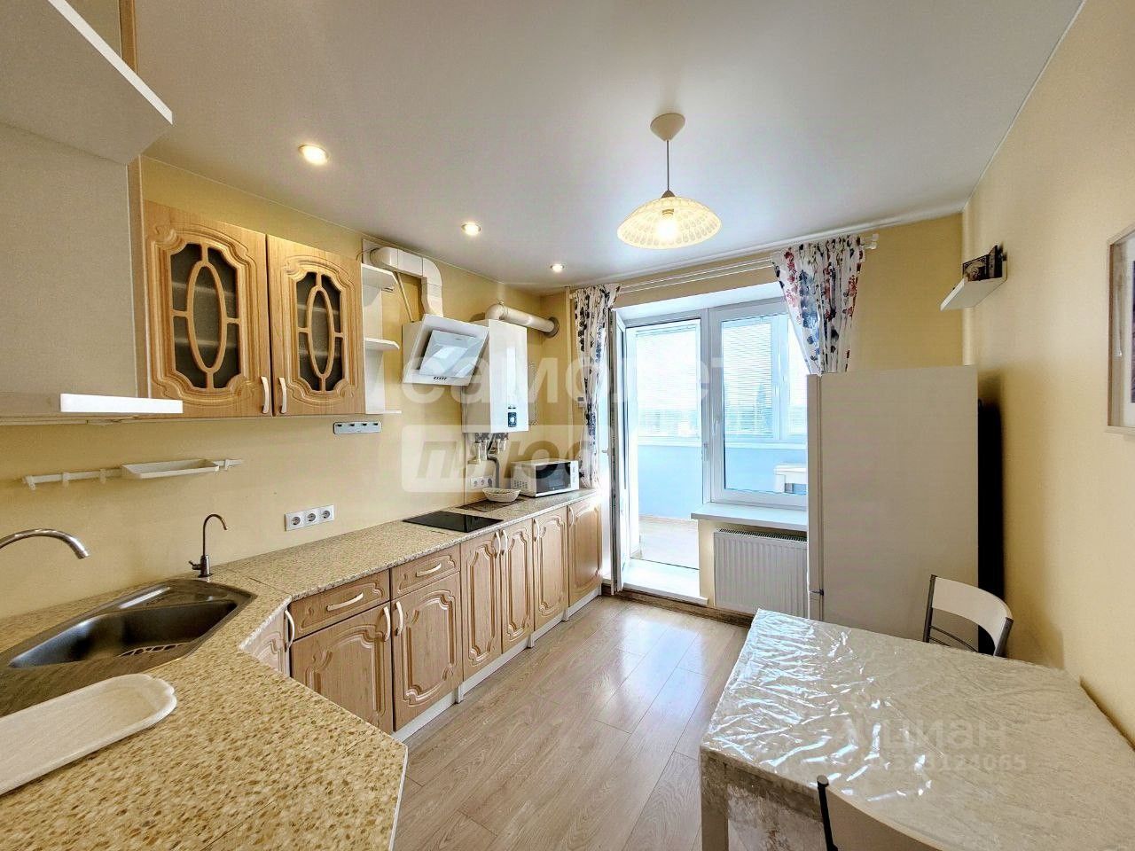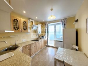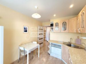 Кухня 8 м, с встроенным кухонным гарнитуром (варочная панель, вытяжка, холодильник). Котел индивидуального отопления, надежен, работает бесшумно. Из кухни выход на лоджию 5 м.кв.