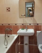 В квартире выполнен косметический ремонт, есть вся необходимая мебель как на кухне, так и в комнате. Просторная кухня площадью 12 кв.м. . В наличии холодильник, телевизор и стиральная машина, поэтому можно сразу заселяться и жить без забот. Ванная комната оборудована , окна выходят во двор, что обеспечивает тишину и уют.