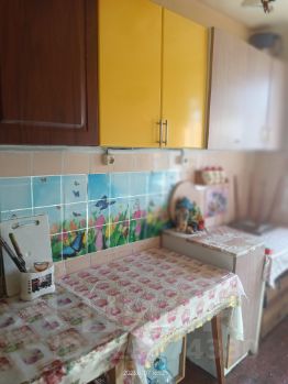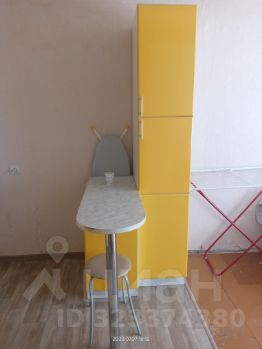 В комнате есть все необходимые удобства: подведена вода, установлены раковина, стиральная машина и кухонный гарнитур. Также на общей кухне есть шкаф и стол. Удобства на четыре комнаты. Мебель.