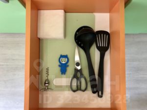 - Кухня: кухонный гарнитур, стол с двумя стульями, полный набор посуды, сковородка, кастрюля, холодильник, газовая плита с автоподжигом, электрический чайник, сушилка для белья. Выход на балкон.
