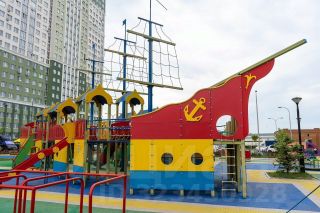 - Во дворе современная детская площадка