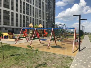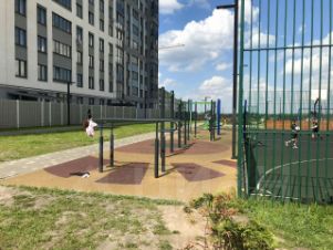 - Во дворе современная детская площадка, зона воркаута и зона отдыха