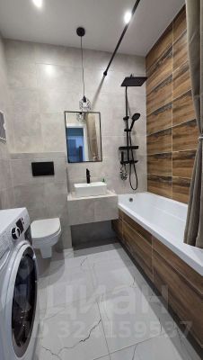 В ванной комнате стиральная машинка.