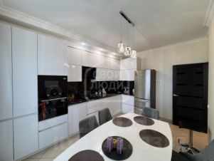 Планировка продуманная: три комнаты комнаты + кабинет, функциональная кухня, отдельные зоны хранения. Удобно для нескольких человек или семейного проживания. Мебель и бытовая техника полностью остаются, можно заезжать без дополнительных вложений.