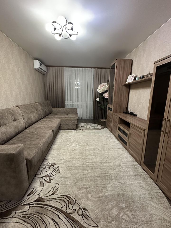 2 шкафа в коридоре, в комнате шкаф зеркальный по всей длине стены 4 секции, куда можно убрать все необходимые вещи, большой новый угловой диван 3,5 метра). Из техники: облачный кондиционер с дистанционным управлением, пылесос, большой холодильник с морозильной камерой, духовой шкаф, телевизор и стиральная машина. Окна выходят во двор, поэтому в квартире тихо и спокойно. Ванная комната оборудована душевой кабиной, что особенно удобно для повседневного использования.
