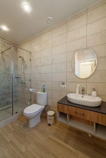 Двухкомнатный трехместный номер. Спальные места: большая двуспальная кровать, диван-кровать. Мини-кухня. Халаты, тапочки. Беспроводные зарядки для телефонов.