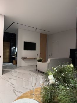 Апартаменты не подходят для проживания с детьми (много стекла и зеркал).