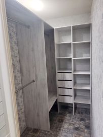 новый матрас и наматрасник, гардеробная с зеркалами, комод, стол, стулья, телевизор, холодильник, посудомоечная машина, стиральная машина, электрическая духовка, плита, вытяжка, кухня, роутер.