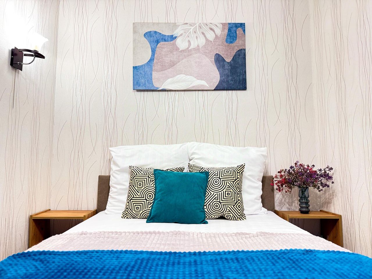 В квартире 5 спальных места: широкая двуспальная кровать (160 см) (2 штуки) и удобный раскладывающийся диван. В апартаментах есть полностью оборудованная кухня, вся необходимая мебель и техника.
