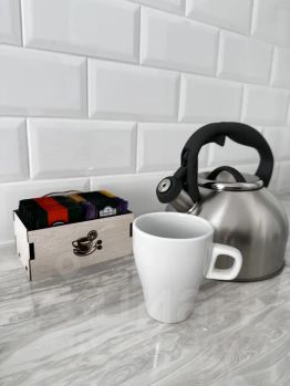 В наличие необходимая бытовая техника: микроволновая печь, холодильник, стиральная машина, чайник, утюг, фен. Набор посуды и столовых принадлежностей.