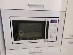 Большая кухня с встроенной техникой. Двухкамерный холодильник, свч, духовой шкаф, варочная панель, вытяжка, посудомоечная машина, стиральная машина.