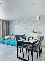 В квартирах возможно размещение от 4 до 6 гостей, спальные места зависят от выбранной квартиры. В апартаментах есть всё необходимое для комфортного проживания: Wi-Fi + кабельное ТВ, вся необходимая мебель, бытовая техника, посуда для приготовления еды, постельное белье и полотенца.