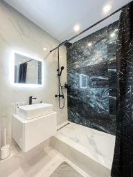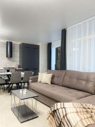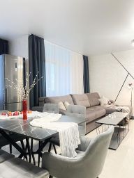 В апартаментах возможно размещение до 6 гостей, спальные места - 2 двухспальных кровати и двухспальный диван. В апартаментах есть всё необходимое для комфортного проживания: Wi-Fi + кабельное ТВ, вся необходимая мебель, бытовая техника, посуда для приготовления еды, постельное белье и полотенца.