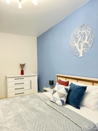 В квартире есть всё необходимое для комфортного проживания: Wi-Fi + кабельное ТВ, утюг, гладильная доска, фен, стиральная машина, СВЧ, электрический чайник, вся необходимая посуда для приготовления еды, постельное белье и полотенца. В квартире 4 спальных места: двуспальная кровать, диван. Возможно дополнительно предоставить спальные места, есть раскладушки и надувные матрасы.